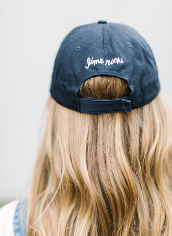 Hugs and kisses from us. Wear this cute embroidered hat on bad hair days, lazy days, or just when you need a little shield from the sun. Navy with white embroidery.